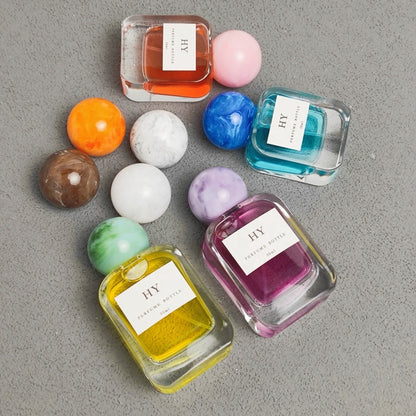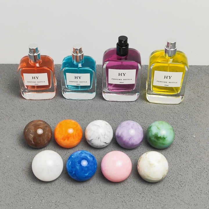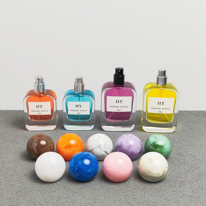 Wholesale 30ml 50ml Flat Glass Perfume Bottles Rounded Rectangle with Colorful Marble Pattern and Pump Sprayer for Ball Caps
