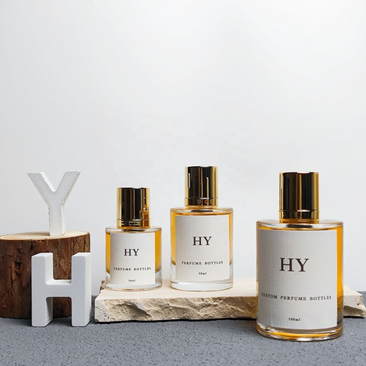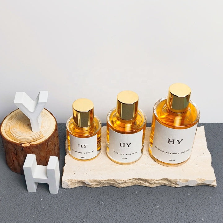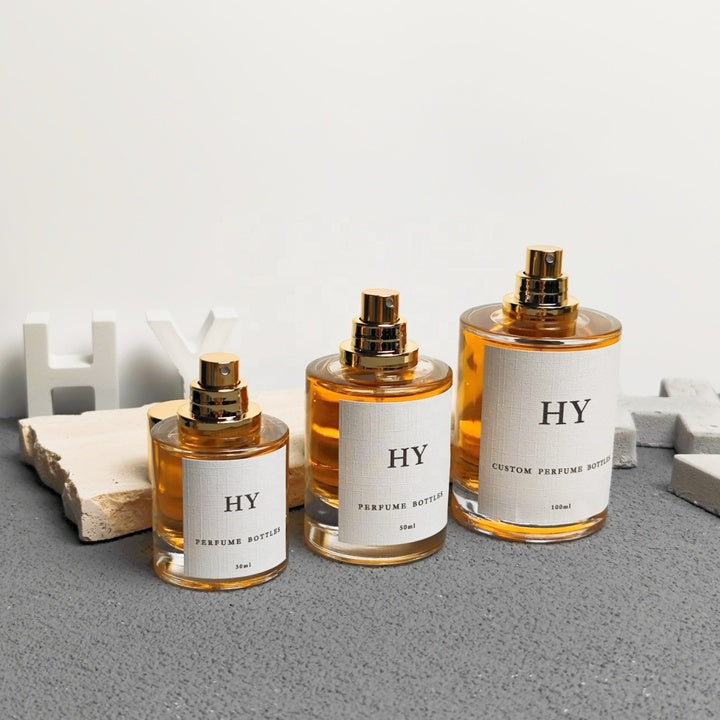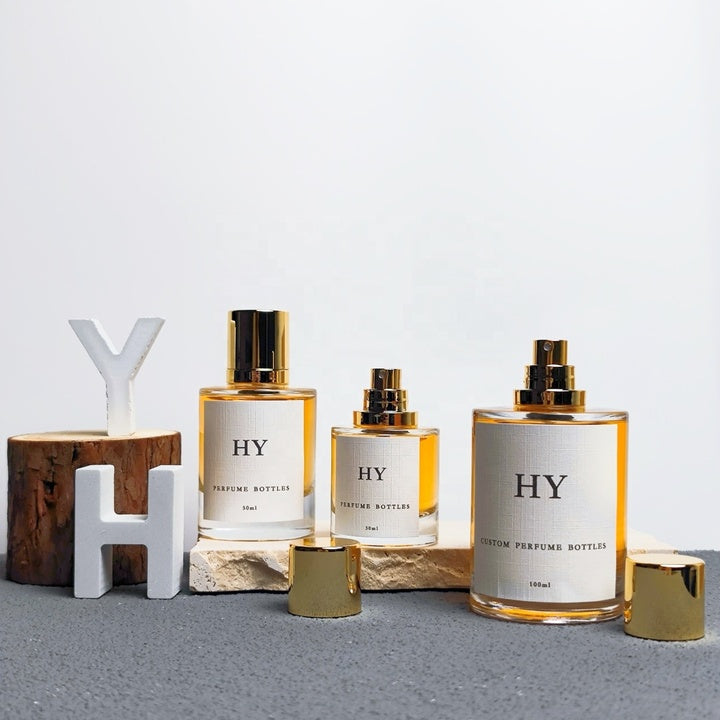 Wholesale Luxury 30ml 50ml 100ml Cylinder Atomizer Glass Perfume Bottles with Gold Cap