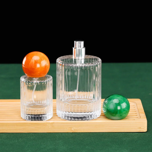Botella de perfume vacía de cuerpo redondo con tapa esférica modelo H014R