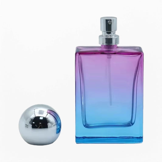 Carré de bouteille de parfum arc-en-ciel avec couleurs et bouchons personnalisables