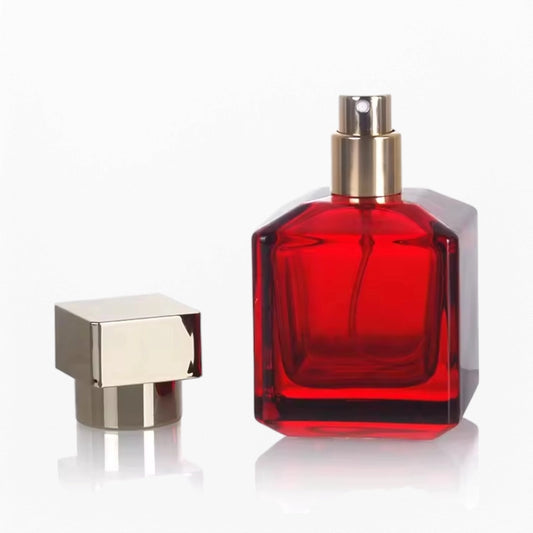 Bouteille de parfum rouge en forme de cube, volume de 50 ml avec pulvérisateur à pompe