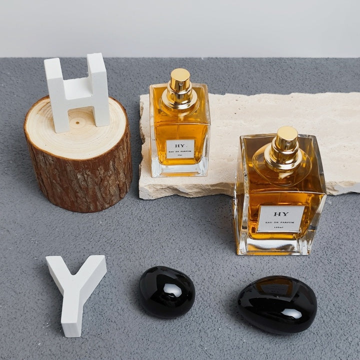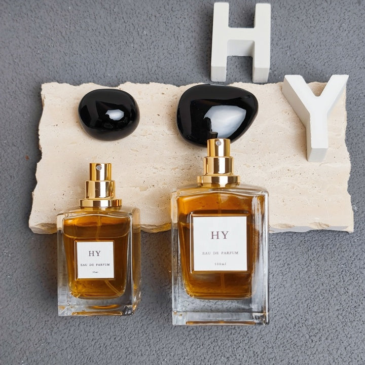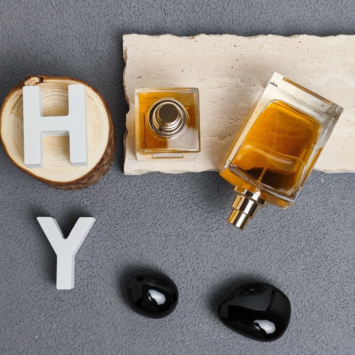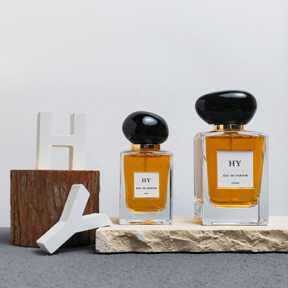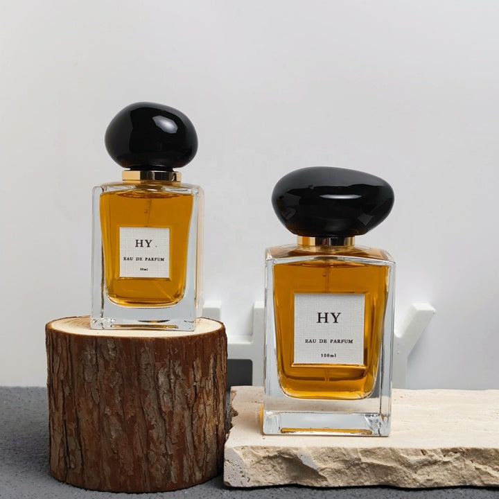 Ready to Ship Luxury 50ml 100ml Crimp Square Glass Perfume Bottle Black Stone Shape Cap with Pump Sprayer Wholesale