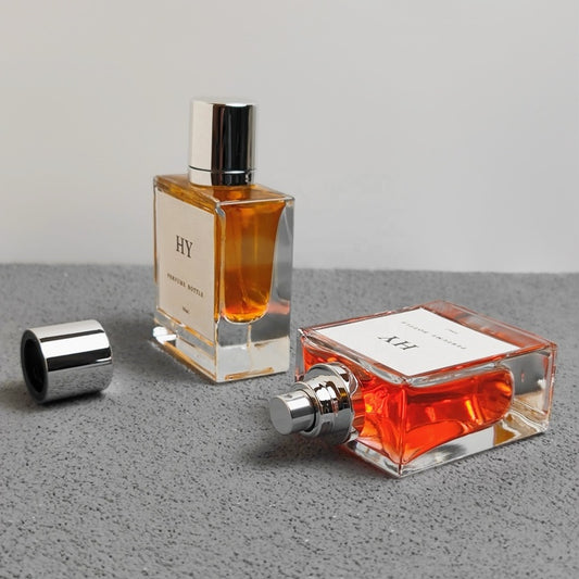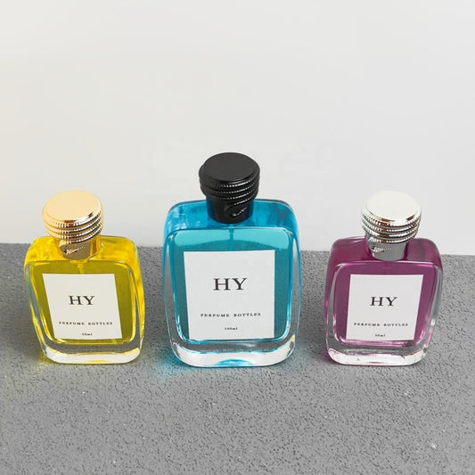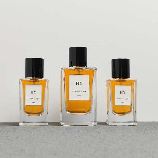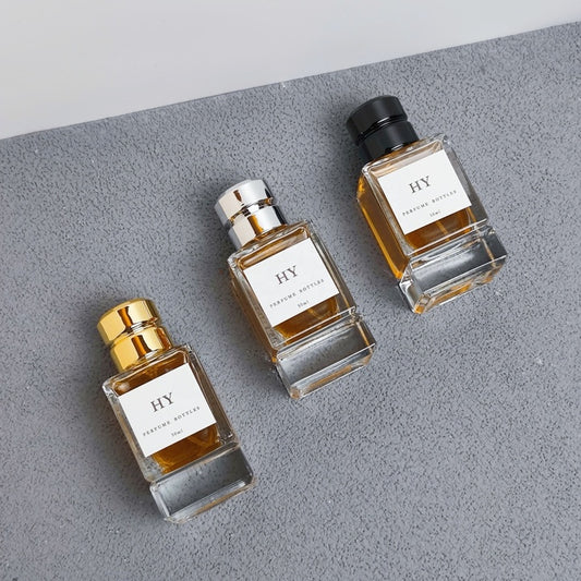 Custom Logo Luxury Heavy Glass Perfume Bottle 30ml 50ml 100ml Square Shape with Gold Silver Black Cap and Pump Sprayer Low MOQ