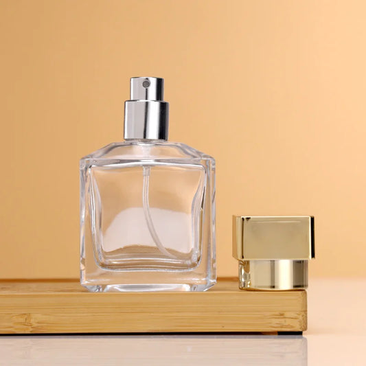 Wholesale Luxury Square Glass Perfume Bottles 30ml 50ml 100ml Empty with Black Square Cap & Pump Spreayer