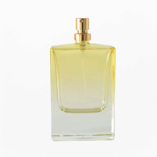 Желтая бутылка одеколона плоского квадрата с градиентным цветовым дизайном